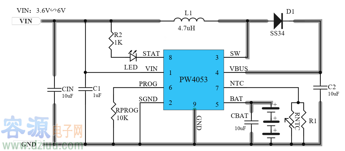 PW4053 是一款 5V 輸入,最大 1.2A 充電電流,支持三節鋰離子電池的升壓充電管理 IC。PW4053 集成功率 MOS,采用異步開關架構,使其在應用時僅需極少的外圍器件," />