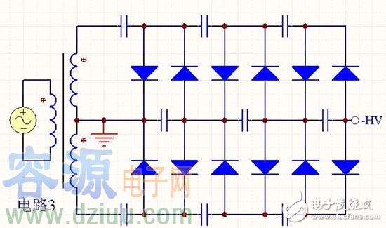 這三個電路都是6倍電壓泵電路,各有特點。我們通常稱每2倍為一階,用N表示,上述電路都是3階,即N=3。如果希望輸出電壓極性不同,只要將所有的二極管反向就可以了。