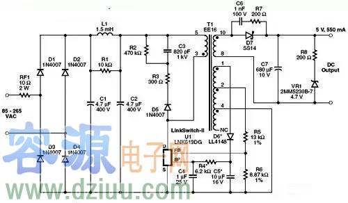 該設(shè)計(jì)采用了Power Integrations的LinkSwitch系列產(chǎn)品LNK613DG。這種設(shè)計(jì)非常適合手機(jī)或類(lèi)似的USB充電器應(yīng)用,包括手機(jī)電池充電器、USB 充電器或任何有恒壓/恒流特性要求的應(yīng)用。