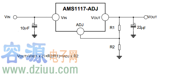 AMS1117有固定和可調兩個版本可用,輸出電壓可以是:1.2V,1.5V,1.8V,2.5V,2.85V,3.0V,3.3V,和5.0V。片內過熱切斷電路提供了過載和過熱保護,以防環境溫度造成過高的結溫。