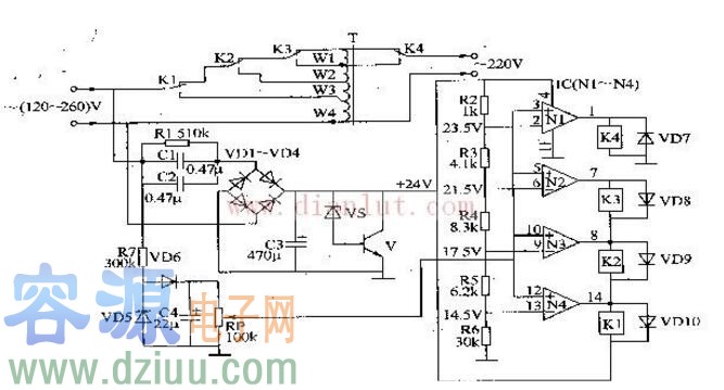 本例介紹一款采用SL322發光二極管驅動器集成電路控制的交流穩壓器,它既可作為自動調壓開關,又可以作為電壓燈光顯示,可用于市電經常偏低的地區。