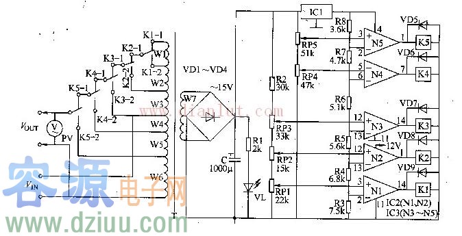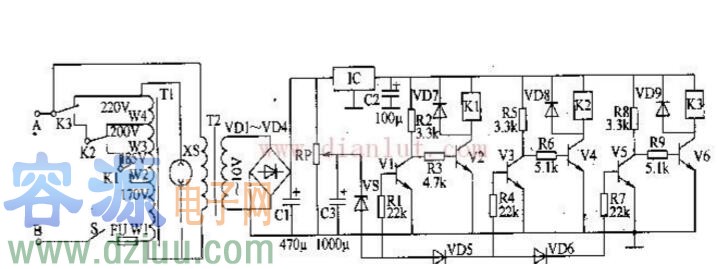 本例介紹一款升壓式交流穩壓器,其輸人電壓為150-230V,輸出電壓為220(1土5%)V,可用于供電電壓不穩定、電壓偏低地區的家庭使用。