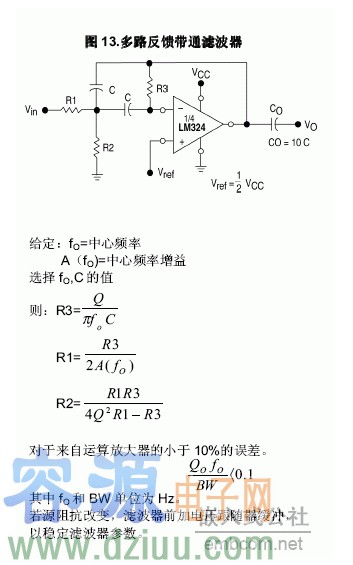 2.LM324多路反饋帶通濾波器電路圖