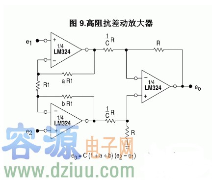 3.LM324高阻抗差動放大器電路圖