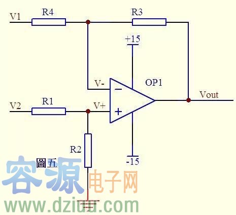 所以 Vout=V2-V1 這就是傳說中的減法器了。