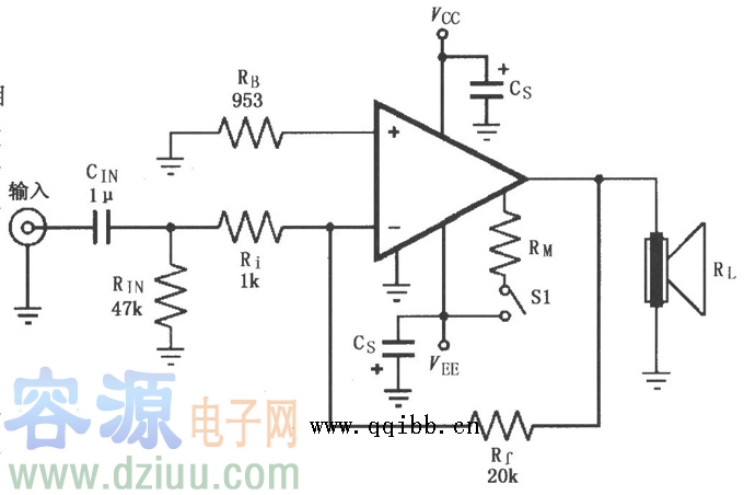 lm380集成功放電路圖:有了這個簡單的電路圖,你可以使用立體聲來驅(qū)動一個8Ω的揚(yáng)聲器。