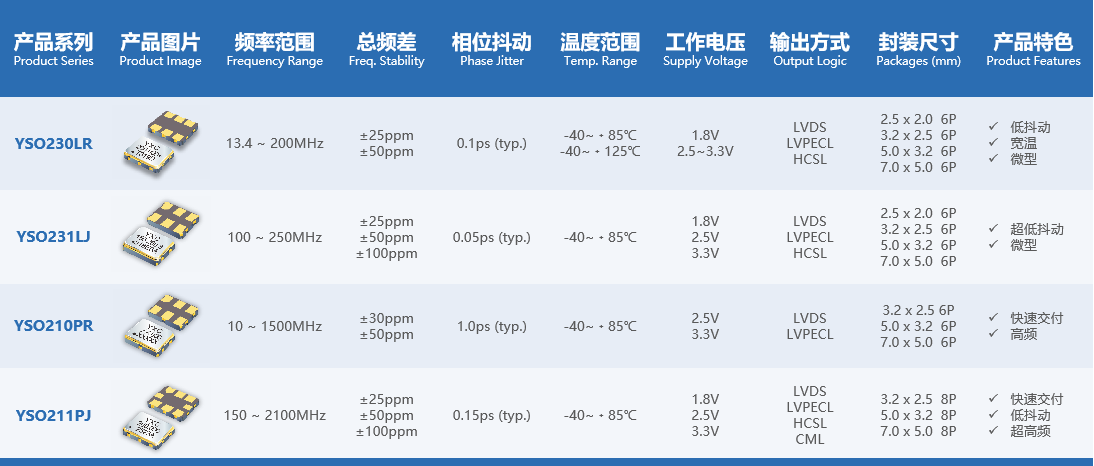 國產(chǎn)晶振原廠揚興科技提供全面的差分晶振產(chǎn)品系列,為視頻處理器提供低抖動、低相噪、高精度的時鐘解決方案。針對視頻處理器應(yīng)用,主推產(chǎn)品系列及特色優(yōu)勢如下: