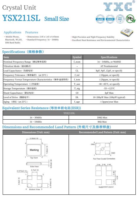 YXC高精度溫補晶振,±2.5PPM,最小尺寸可做到2016,適
