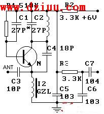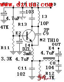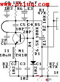 上是一個受間歇振蕩控制的高頻振蕩器, 高頻振蕩器采用電容三點式振蕩器,振蕩頻率和接收頻率相一致.而間歇振蕩又是在高頻振蕩的過程中產(chǎn)生的,反過來又控制著高頻振蕩器的振蕩和間歇,間歇振蕩的頻率是由電路的參數(shù)決定的,