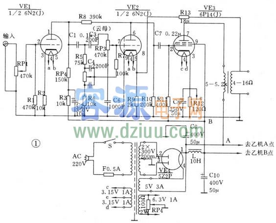 的電位器。RP4用2W左右的100Ω線繞電位器。    <<版權聲明:本文由容源電子網(www_dziuu_com)整理提供,部分內容來源于網絡,如有侵犯到你的權利請與我們聯系更正。》溫馨提示:將鼠標指針放在圖片上,滾動鼠標可以動態改變圖片大小,方便分析電路圖。![[圖文]自制6P14小功率膽機](/include/editor/UploadFile/20111221182846778.jpg) <<版權聲明:本文由容源電子網(www_dziuu_com)整理提供,部分內容來源于網絡,如有侵犯到你的權利請與我們聯系更正。》