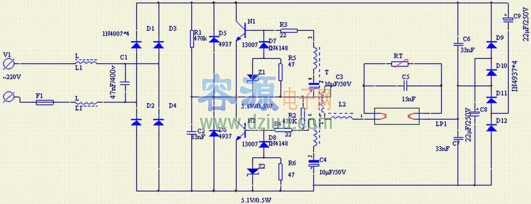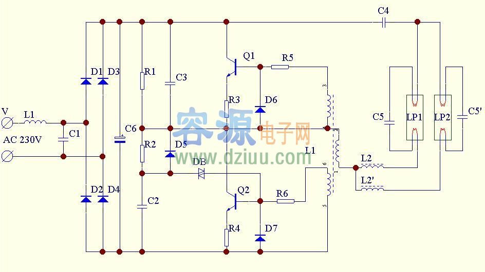 電子鎮(zhèn)流器電路圖。詳細(xì)介紹如下: <<版權(quán)聲明:本文由容源電子網(wǎng)(www_dziuu_com)整理提供,部分內(nèi)容來(lái)源于網(wǎng)絡(luò),如有侵犯到你的權(quán)利請(qǐng)與我們聯(lián)系更正。》