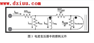 我們應注意到圖3電路中的四個損耗功率的元件:初級回路的電阻(PRIDCR)、磁心損耗電阻(Rcore)、次級的DCR(RDCR)被減小為1/N2。這些損耗影響著電流源(I)。電阻對電流變壓器的精度具有間接影響。 對電路的影響