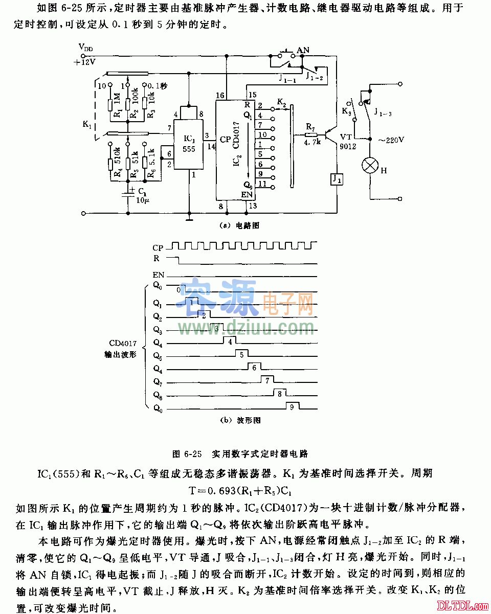 基于555和CD4017實(shí)用數(shù)字式定時(shí)器電路