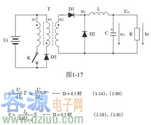 正激式變壓器開關電源電路參數計算主要對儲能濾波電感、儲能濾波電容,以及開關電源變壓器的參數進行計算。 正激式變壓器開關電源儲能濾波電感和儲能濾波電容參數的計算 圖