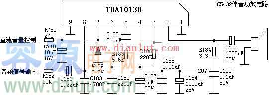 TDA1013B引腳功能電壓:在彩電中,TDA1013B很常見,其功能是伴音功放電路,此集成電路應用16V供電,單聲道音頻信號放大電路,詳細電路圖如下: