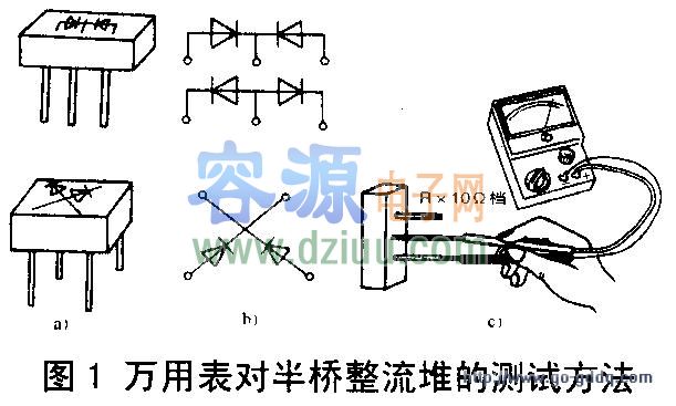 1.半橋的檢測半橋是由兩只整流二極管組成,通過用萬用表分別測量半橋內部的兩只二極管的正、反電阻值是否正常, 判斷出該半橋是否正常。   <<版權聲明:本站內容部分來源于網絡,如侵犯到你的權利請及時與我們聯系更正,聯系QQ:316520686!
