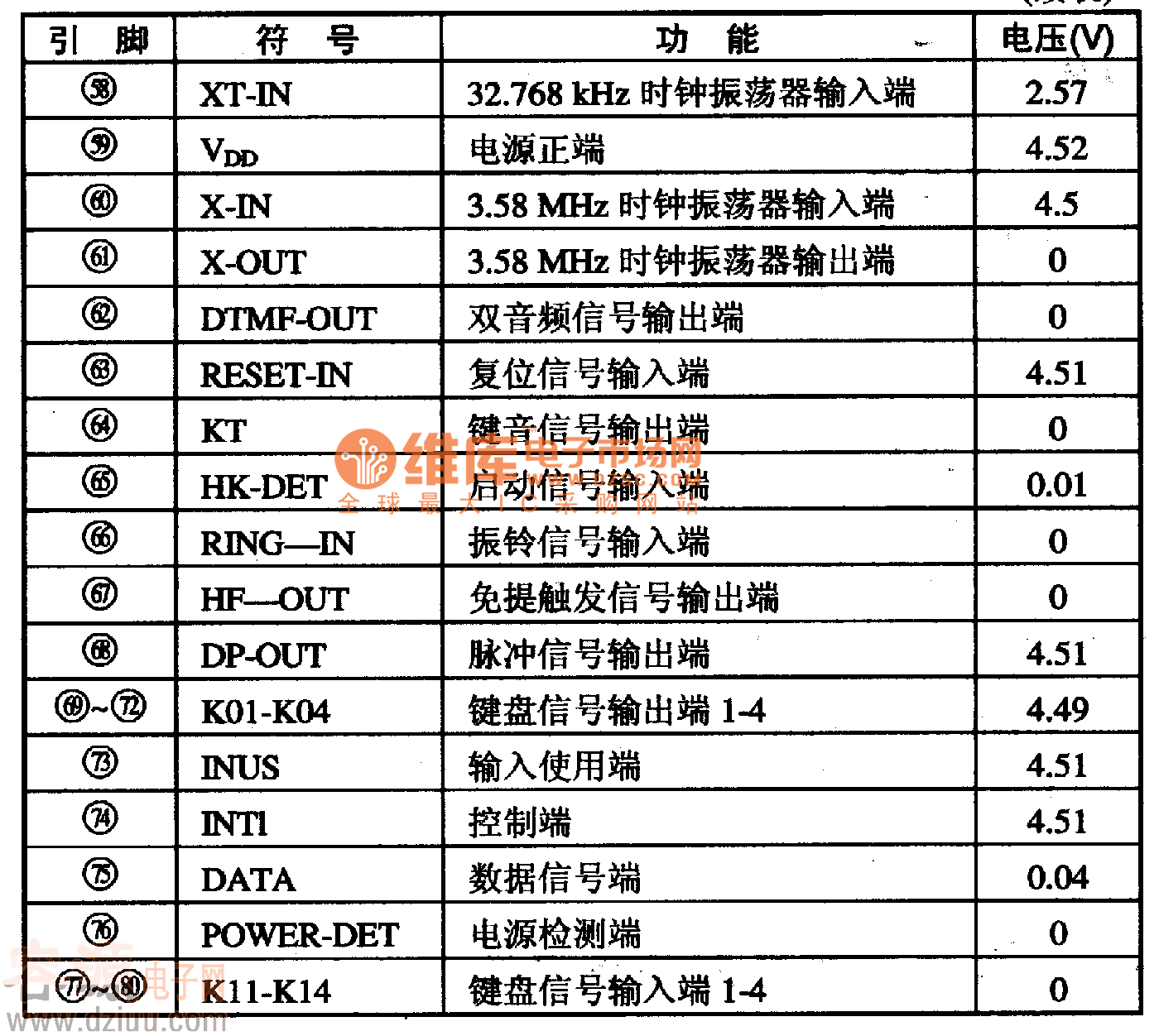 LB10427A集成電路采用80腳軟封裝,其集成電路的引腳功能及數據見表1所列。