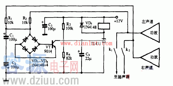 特簡單低成本喇叭保護電路;在音箱系統中,功放系統很重要,但喇叭保護電路也很重要,喇叭保護電路可以有效保護喇叭不會被燒壞。下面詳細介紹特簡單低成本喇叭保護電路