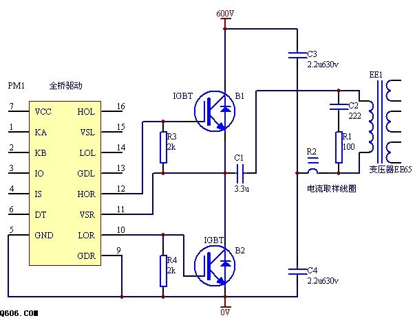 是1000W以下的電源方案可以按該電路的方法, 將不使用的驅動輸出組懸空可以使驅動器的直流供電 電流減少一半。 在這里的驅動能力是可以直接驅動100A的IGBT管子  60A的MOS管子,對付1000W的電源是