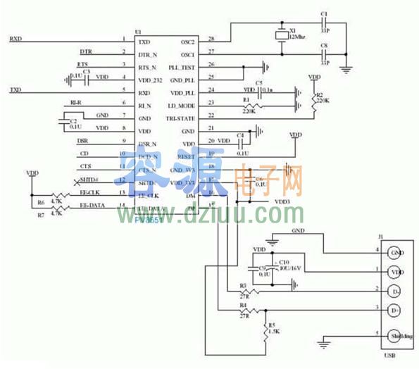 PL2303PV8651 USB轉(zhuǎn)串口原理圖   <<版權(quán)聲明:本文由容源電子網(wǎng)(www_dziuu_com)整理提供,部分內(nèi)容來源于網(wǎng)絡(luò),如有侵犯到你的權(quán)利請與我們聯(lián)系更正。》
