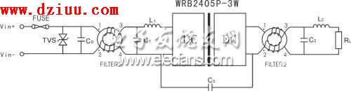 ,以及對干擾較強或EMC要求較嚴格的電路,應考慮在輸入端加上自恢復FUSE及TVS管進行一級防護,使得有效地將過高的脈沖干擾電壓鉗制在模塊可承受值范圍之內,并在輸出端也 共模扼流圈FILTER2或安規電容。如圖3示:   <<版權聲明:本文由容源電子網(www_dziuu_com)整理提供,部分內容來源于網絡,如有侵犯到你的權利請與我們聯系更正。》