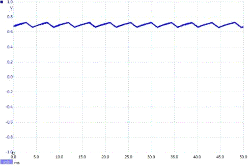在本例的積分電路中,RC=10ms,只有兩倍的信號周期,但是通過測試,信號效果還是比較理想的。如果將更多的積分電路串聯(lián),效果會(huì)更好。