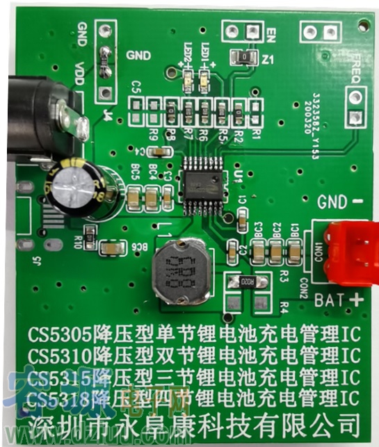 深圳市永阜康科技有限公司結合客戶實際應用方案,推出管腳兼容的單節/兩節/三節/四節鋰電池同步降壓型充電管理芯片系列:CS5305/CS5310/CS5315/CS5318,耐壓高達28V。該系列芯片具有頻率抖動的功能,大大改善系統的EMI特性;充電電流最高可達3A,效率90%以上;全系列型號都具備完整的涓流,恒流,恒壓充電過程;具有終止電流可編程功能,通過設置不同的外部分壓電阻, 可以很方便的調節充電終止電流的大小;各種安全可靠的保護措施以及雙LED燈充電狀態指示,還帶了NTC溫度控制功能;全系列芯片采用獨有的EQA-16封裝,尺寸與SOP-8大小相當。廣泛應用于按摩儀、榨汁機、藍牙音響、廣場舞音響、無人機等案列。