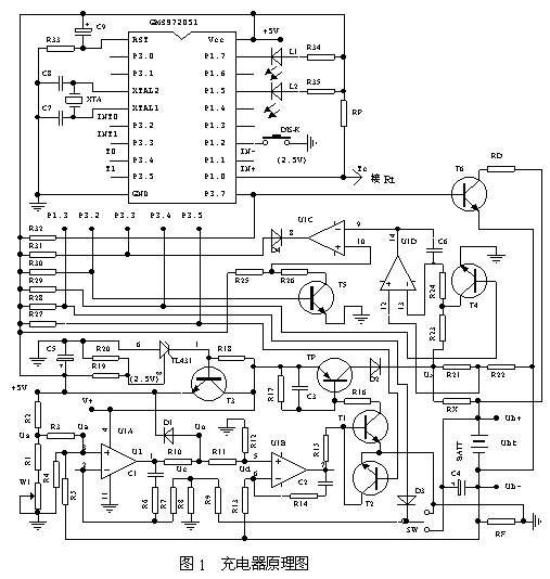 介紹一種性價比高的可對鎳鎘、鎳氫及鋰離子電池充電的多功能充電器。充電器采用單片機GMS97C2051作編程控制器,其內部的比較器用作電池最高溫度檢測,用1片LM324和1支TL431以及若干分立元件構成恒壓—恒流電路、電壓檢測電路、基準電壓源(兼作單片機電源)電路。