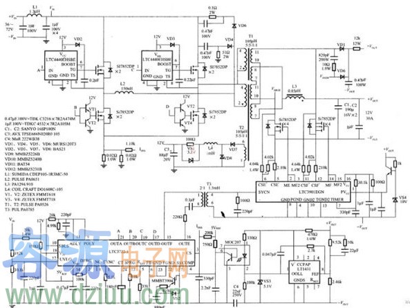 LTC3722-1控制的大功率DC/DC電路圖