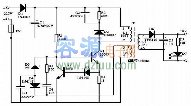 一款簡(jiǎn)單易作的開(kāi)關(guān)電源 <<版權(quán)聲明:本文由容源電子網(wǎng)(www_dziuu_com)整理提供,部分內(nèi)容來(lái)源于網(wǎng)絡(luò),如有侵犯到你的權(quán)利請(qǐng)與我們聯(lián)系更正。》