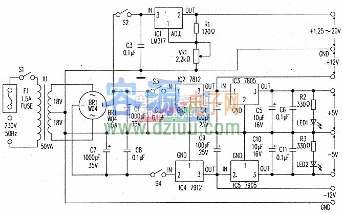 自制實驗室用三路電源 <<版權聲明:本文由容源電子網(www_dziuu_com)整理提供,部分內容來源于網絡,如有侵犯到你的權利請與我們聯系更正。》