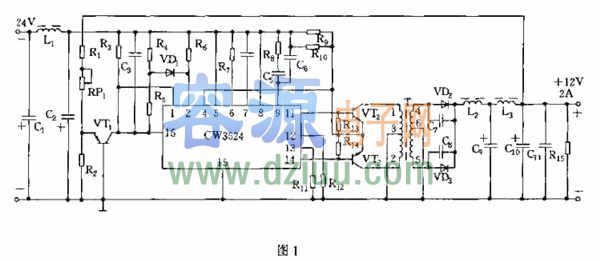 由CW3524型集成脈寬調制器組成的雙端開關穩壓電源,輸出電流為2A,輸出電壓為+12V。CW3524是本電源的核心元件,并直接向功率轉換電路的開關功耗提供脈寬調制信號。《版權聲明:本文由容源電子網(www_dziuu_com)整理提供,部分內容來源于網絡,如有侵犯到你的權利請與我們聯系更正!