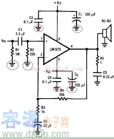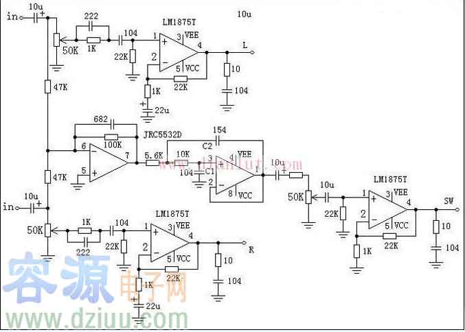 LM1875T聲道有源音箱功放電路