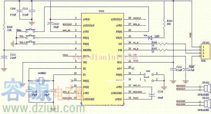 由MK909D構成的USB音箱電路