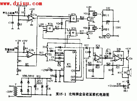 下面介紹全自動豆漿機電路,本電路基于4060集成電路,為廣大電子電器維修工作者提供維修數據,我們會不斷提供更新的電路圖出來,也歡迎大家為容源電子網提供電路圖,本文由m.flswjt.cn整理提供,部分內容來源于網絡,如有侵犯到你的權利請與我們聯系更正。