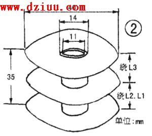 振蕩變壓器T可采用黑白電視機(jī)的行輸出變壓器磁芯繞制。加熱后先將原線圈、骨架拆除,然后自制骨架。骨架可由繞制收音機(jī)中波天線線圈的內(nèi)徑11mm的塑料圓管和三片內(nèi)徑14mm、外徑40mm的圓形塑料片用膠水粘在一起制成(如圖2),骨架做好后 繞線。12用Φ0.25mm的漆包線在骨架上密繞25圈,加一層青殼紙后再繞L1,L1用傘0.39mm漆包線繞60圈引出,D用中0.15mm漆包線密繞2000圈,找出各繞組同名端分別固定,然后在線圈上浸上一層絕緣漆以增強(qiáng)其絕緣強(qiáng)度。為防止磁飽和,應(yīng)將磁芯留一點(diǎn)磁隙,再扣上磁芯,用膠水固定