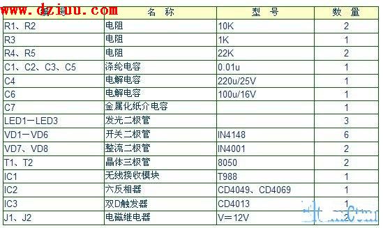 Q(13腳)翻轉輸出高電平,T2導通,J2吸合,電機反轉,窗簾打開。同樣再次按動D鍵,Q(11腳)再次翻轉輸出低電平,窗簾停止運動。如此通過兩鍵可任意實現窗簾的打開、合上、停止,非常方便。