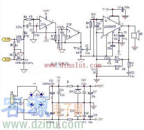分享漫步者低音炮電路圖(TDA1521,NE5532)