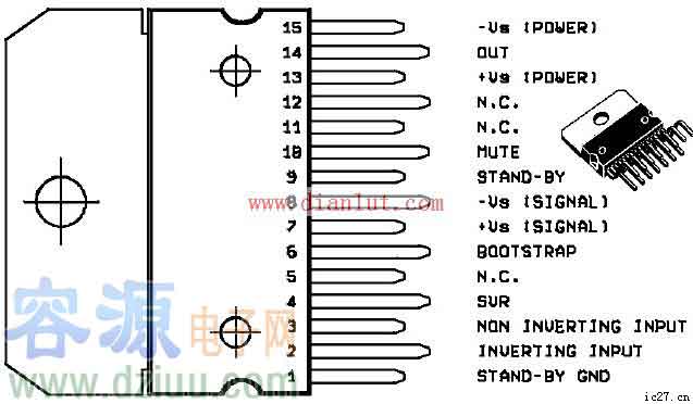 ⒂腳為-Vs(末級)。 <<容源電子網論壇正式上線,為朋友們建立一個友好互動交流平臺,歡迎大家去論壇和朋友們一起分享、學習電子技術。對本文有什么疑問請直接到論壇相應欄目發貼求助。