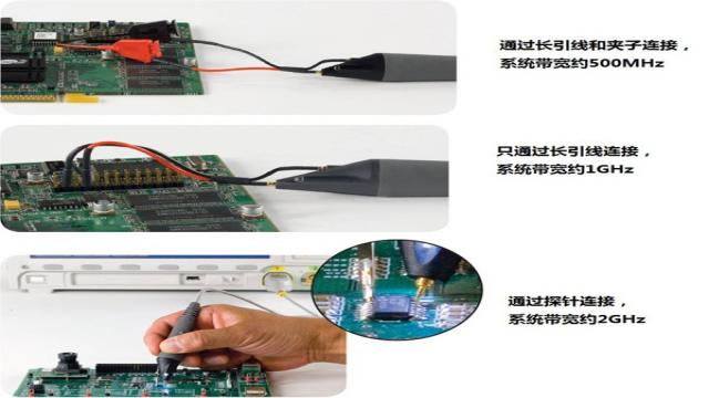 下圖是典型的有源探頭的前端部分的等效電路圖。放大器前面的連接部分是一段阻抗不受控的連接線,有很多的等效電容和等效電感,這部分對系統帶寬、高頻下的輸入阻抗、頻響特