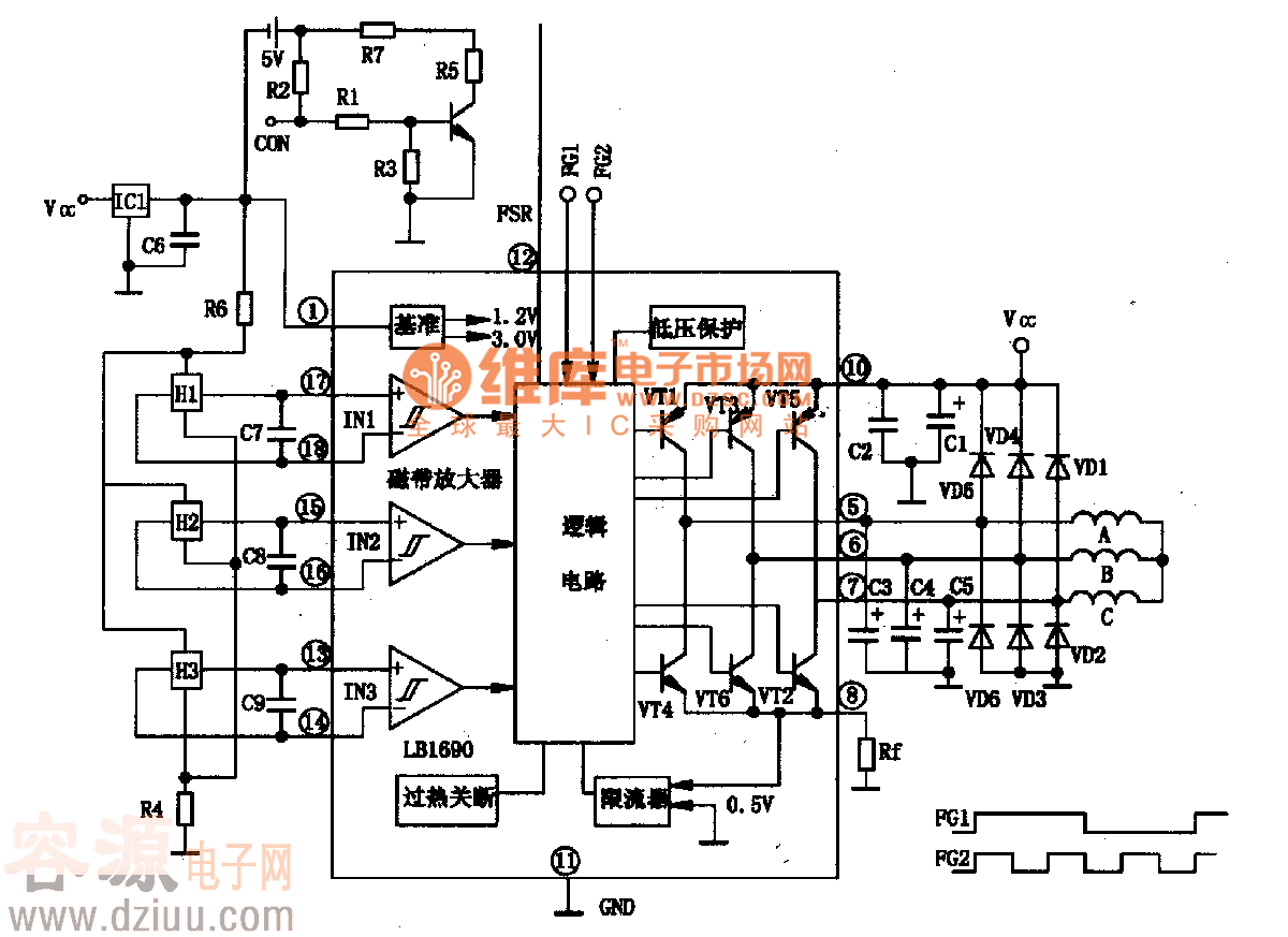 LBl690是日本三洋公司生產的三相無刷直流電機驅動控制集成電路,廣泛應用于國產和進口"換新風"、"清新空調"直流無刷換氣風機的驅動控制。 1·功能特點 LBl690集成電路具有過電流限制、熱關斷電路、HALL磁