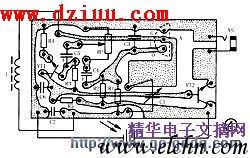為該收音機的印制電路板接線圖。印制電路板用單面敷銅板加工而成, 尺寸約為75mm×35mm。