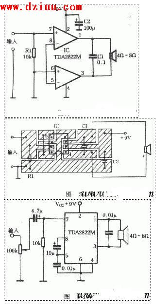 區別在于: TDA2822M從3V到15V均可工作,而TDA2822的最高工作電壓只有8V。使用TDA2822