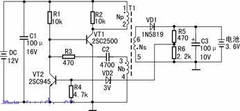 ,電路就這樣重復(fù)振蕩下去。R5、R6、VD2、VT2等組成限壓電路,以保護(hù)電池不被過充電,這里以3.6V手機(jī)電池為例,其充電限制電壓為4.2V。在電池的充電過程中,電池電壓 上升,當(dāng)充電電壓大于4.2V時(shí),經(jīng)R5、R6分壓后穩(wěn)壓二極管VD2開始導(dǎo)通,使VT2導(dǎo)通,VT2的分流作用減小了VT1的基極電流,從而減小了VT1的集電極電流Ic,達(dá)到了限制輸出電壓的作用。