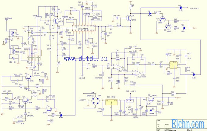 由IC1 (BA4424),本振回路(Q1,Q2)及外圍元件組成。