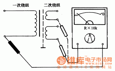 1)檢測(cè)一、二次繞組的通斷,將萬(wàn)用表置于Rx1擋,將兩表筆分別碰接一次繞組的兩引出線,阻值 為幾十-幾百歐,若出現(xiàn)∞則為斷路,若出現(xiàn)0阻值,則為短路。用同樣方法測(cè)二次繞組的阻值,