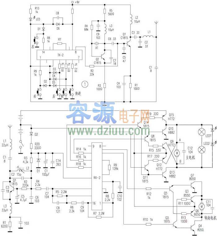 介紹遙控玩具車電路圖    <<版權聲明:本文由容源電子網(www_dziuu_com)整理提供,部分內容來源于網絡,如有侵犯到你的權利請與我們聯系更正。》