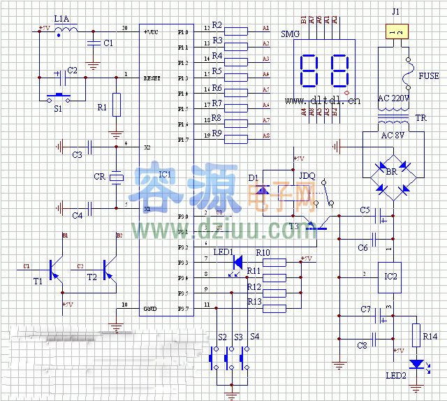 受到干擾死機時可以按一下S1進行復位。《版權聲明:本文由容源電子網(www_dziuu_com)整理提供,部分內容來源于網絡,如有侵犯到你的權利請與我們聯系更正。》