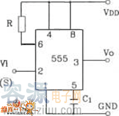 555構(gòu)成單端雙穩(wěn)態(tài)電路圖