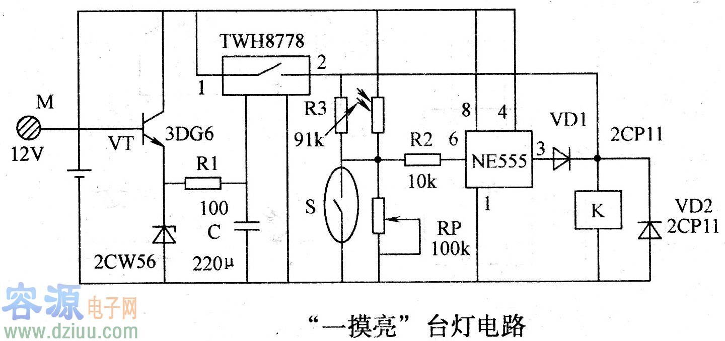 應(yīng)用NE555制作“一摸亮”臺(tái)燈電路